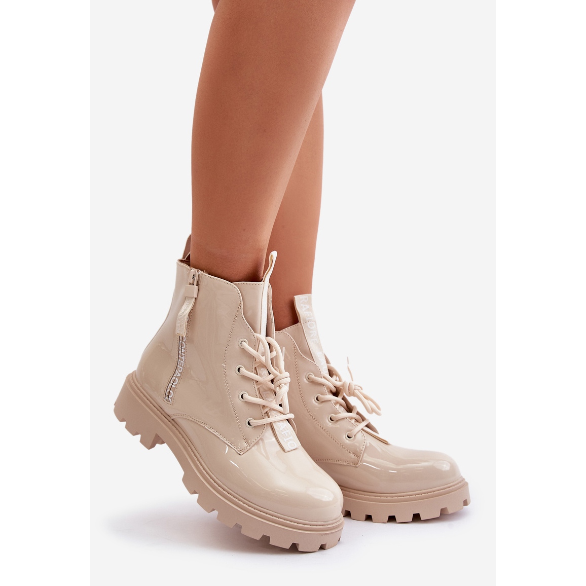 Inna marka Ženske lakirane radne čizme, izolirane, s natpisima, bež Zinfreya