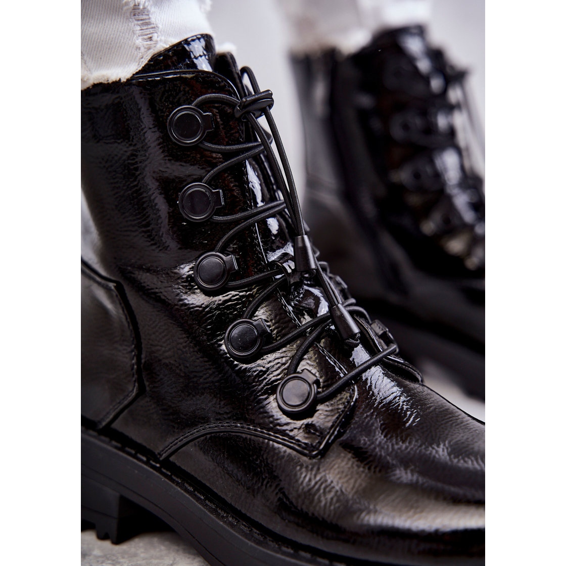 Pojedinosti: PJ1 Ženske lakirane tople čizme s rebrastim crnim helijem crna