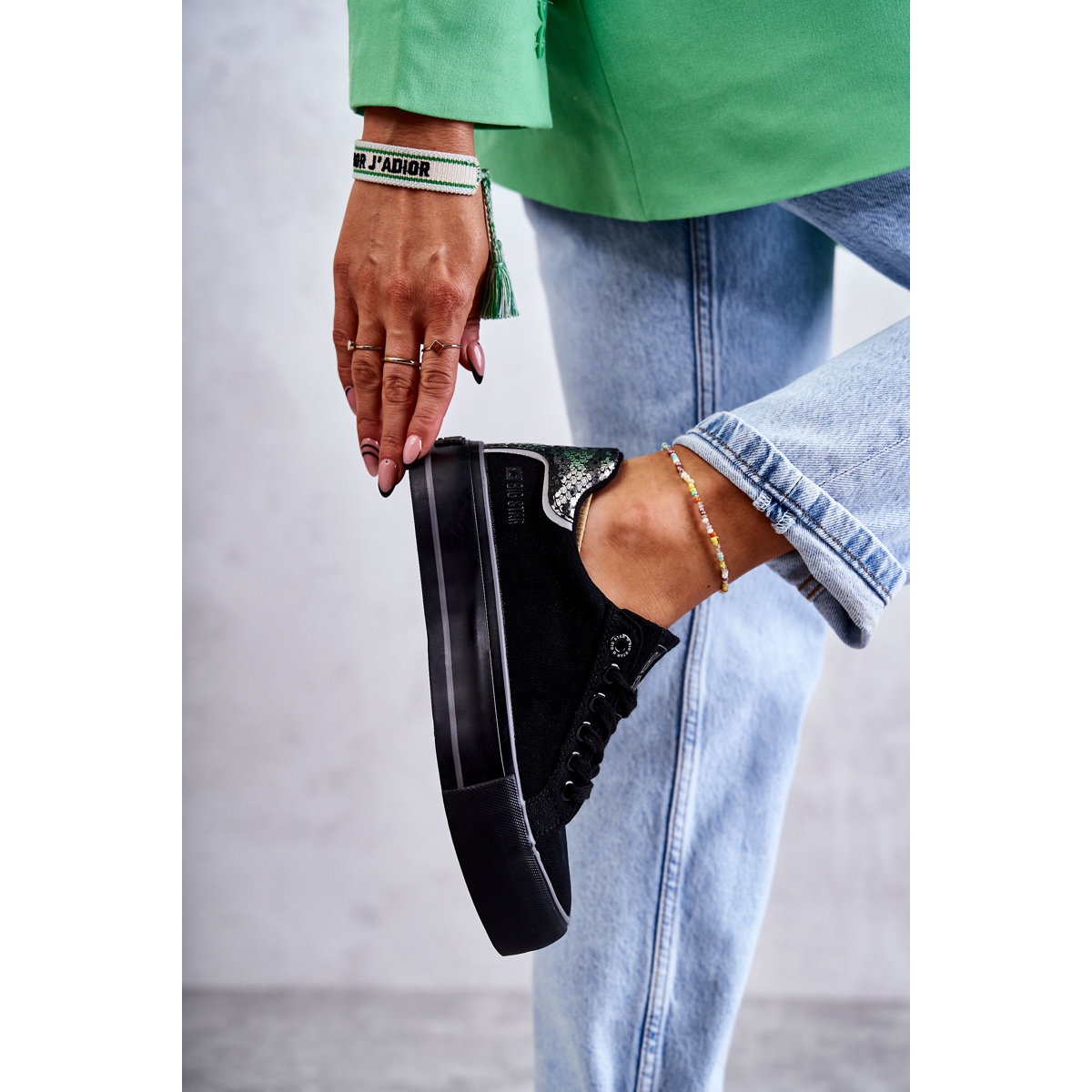 Ženske platnene tenisice Big Star KK274036 u crnoj boji savršen su izbor za svaku ženu koja cijeni stil, udobnost i svestranost. Izrađene od visokokvalitetnog tekstilnog materijala, s dodatnim umetcima od eko kože, ove tenisice spajaju moderan izgled i praktičnost.