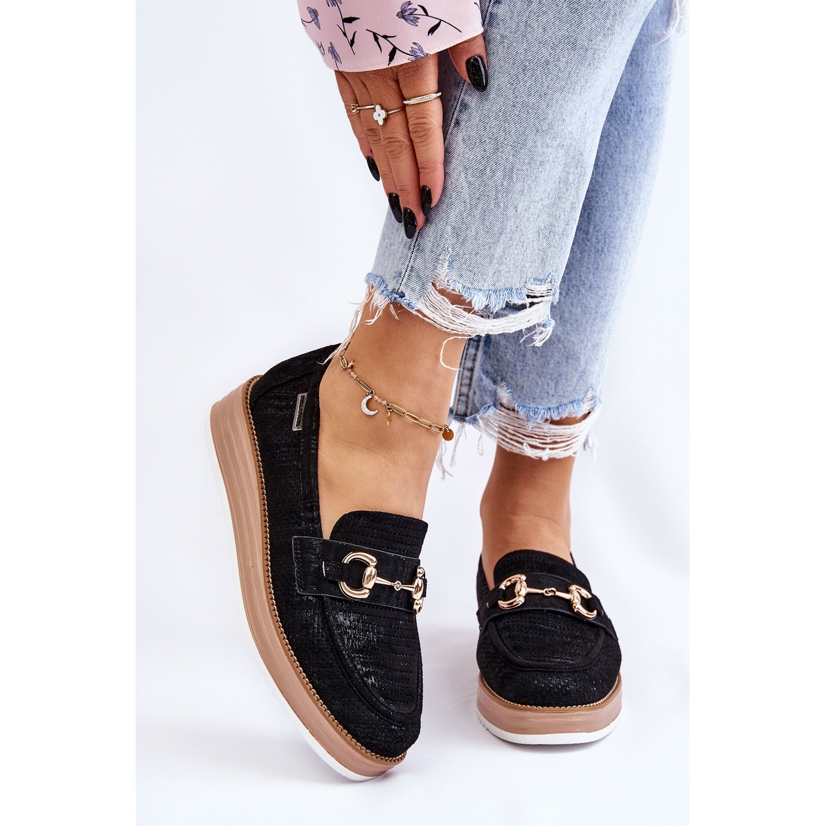 PM1 Ženske mokasine na platformu crne Danny crna