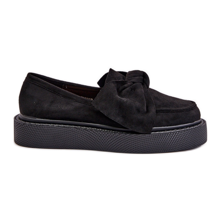 Ženske mokasine na platformu s mašnom, crne naivine crna