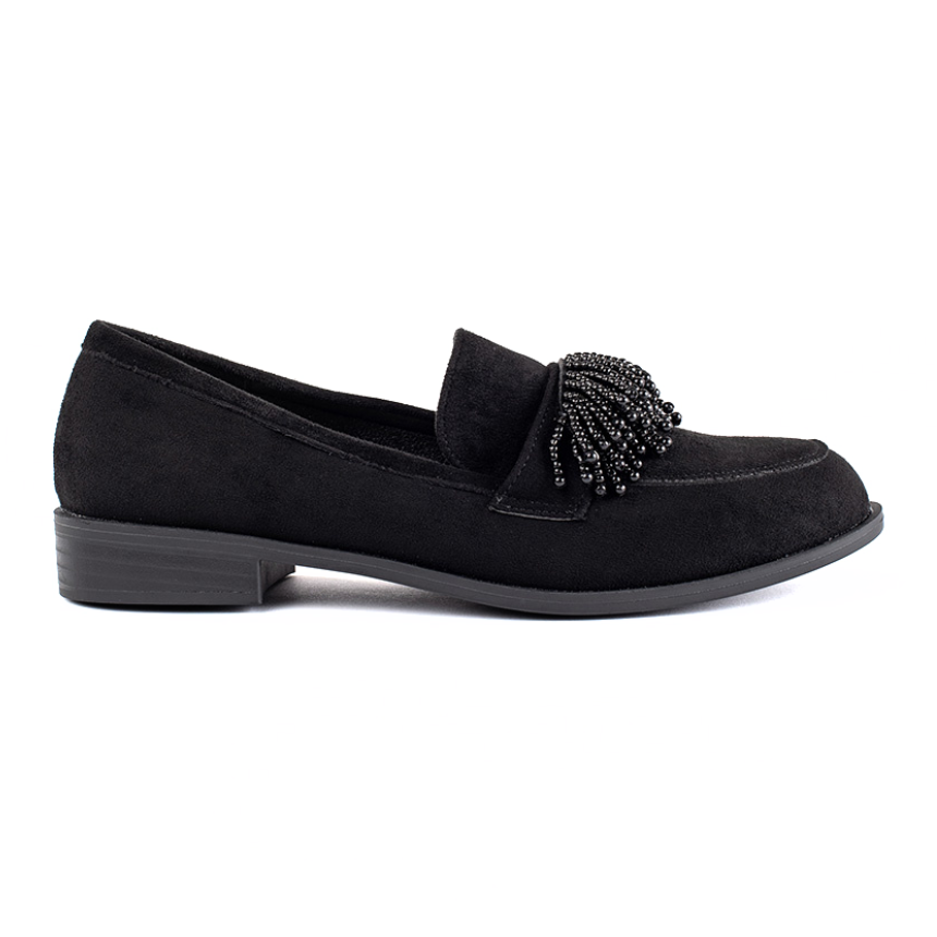 Pojedinosti: Ženske mokasine od brušene kože s perlicama crna