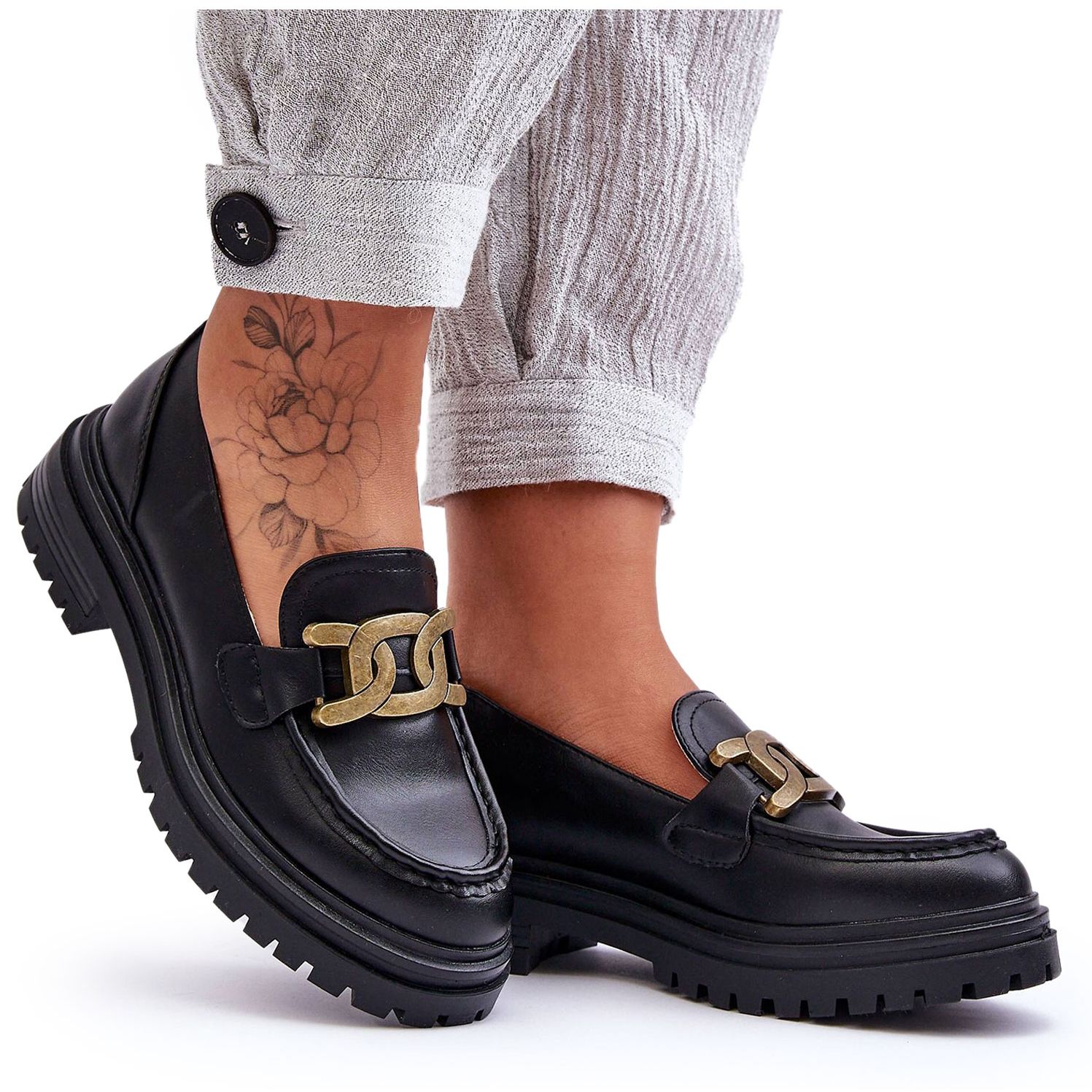 PG1 ženske mokasine na platformu s ukrasom Black Ameg – klasa i udobnost za svaki dan