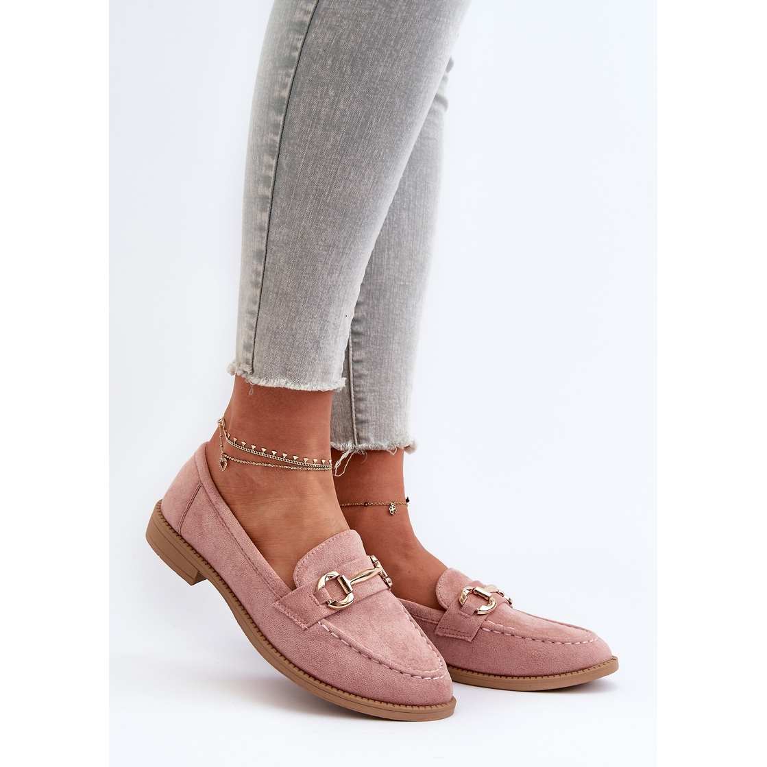 Pojedinosti: Ženske mokasine s ravnom petom i ružičastim aviole ukrasom ružičasta