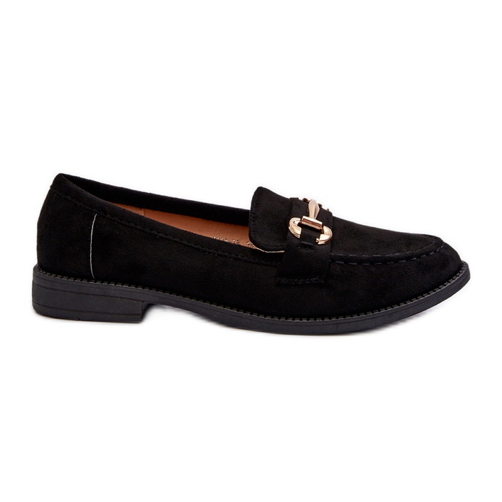 Ženske mokasine s ravnom petom s ukrasom, crne aviole crna