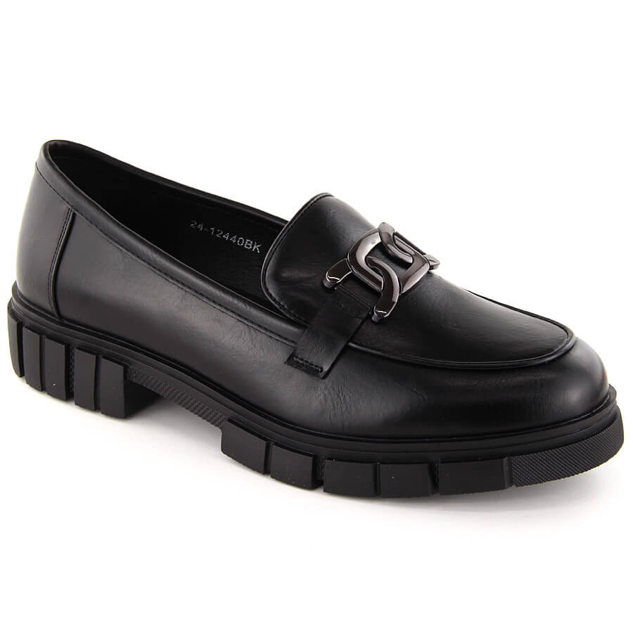 Ženske mokasinke s lancem crne Potocki 12440 crna