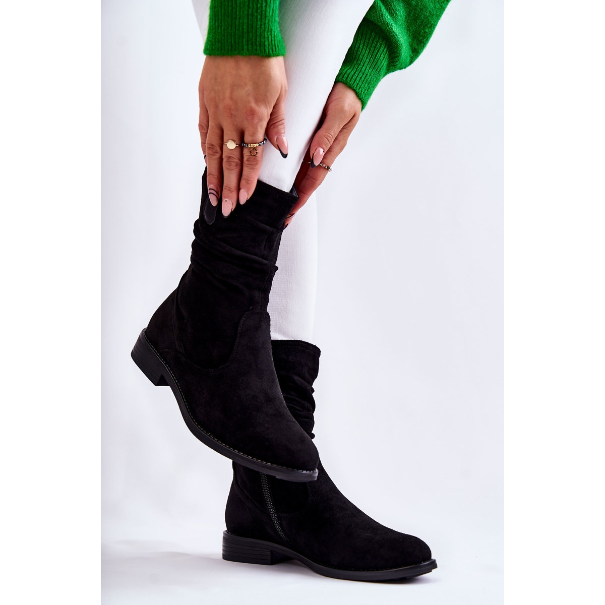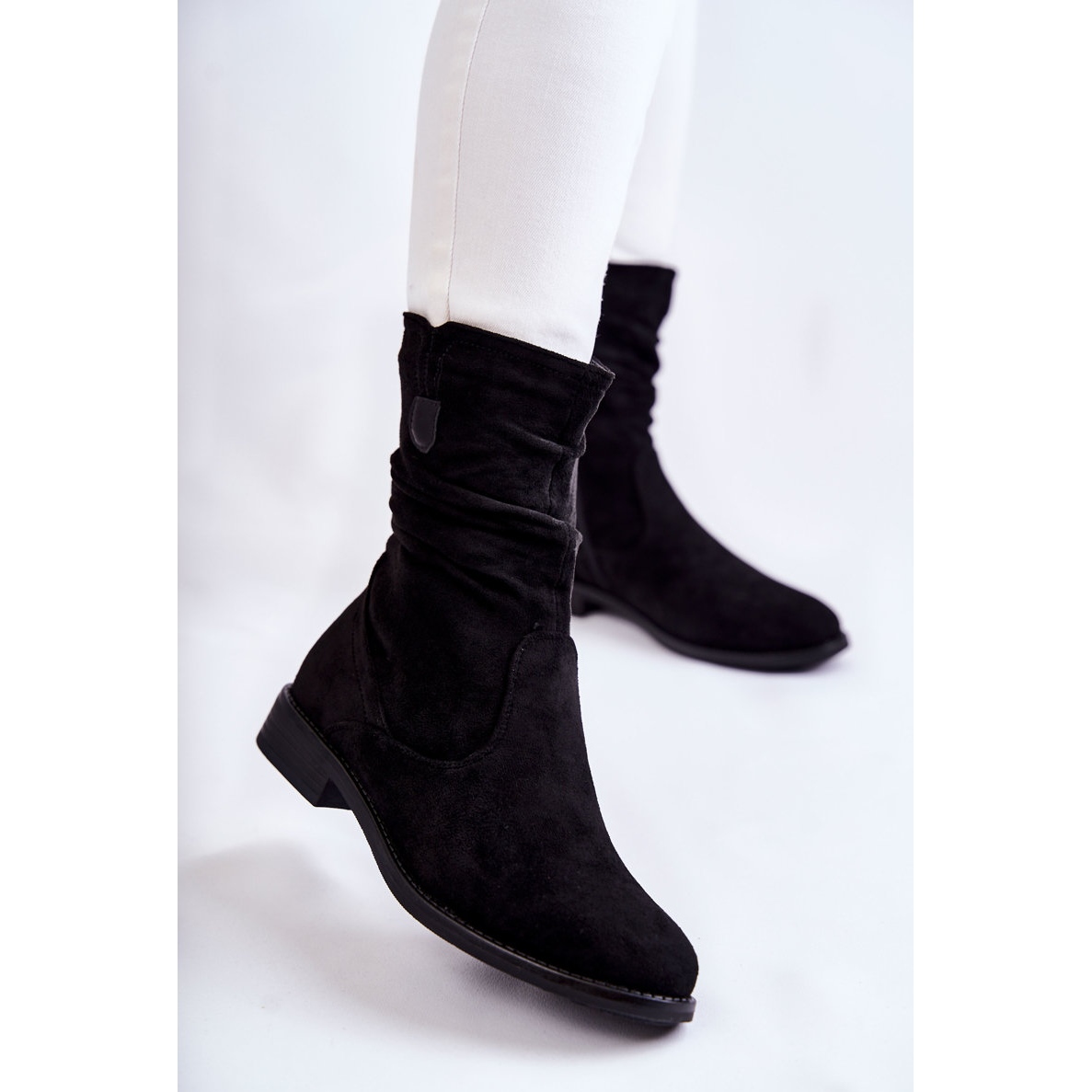 S.Barski Ženske naborane antilop čizme crne Joanne crna