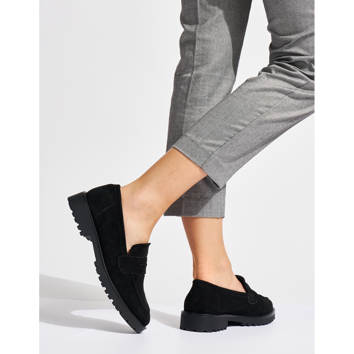 Moccasins imaju izgrađenu -u meku petu i okrugli nos, što im daje jedinstveni stil i udobnost. Plastični potplat s gaznošću jamči stabilnost i dobru prianjanje, što ih čini idealnim izborom svakodnevno, kao i za posebne ceremonije. Njihova 5 cm visoka platforma dodaje lakoću figuri, a umetnuta kopča čini stavljanje i uklanjanje cipela izuzetno jednostavnim.