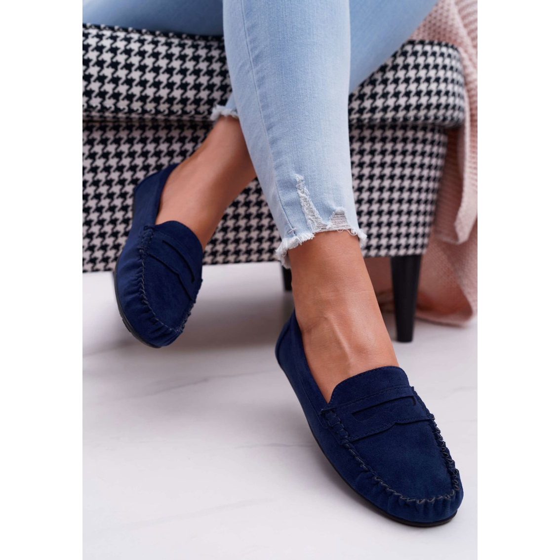 Uložite u udobnost i moderan izgled uz ženske bolero mokasine od tamnoplave brušene kože!