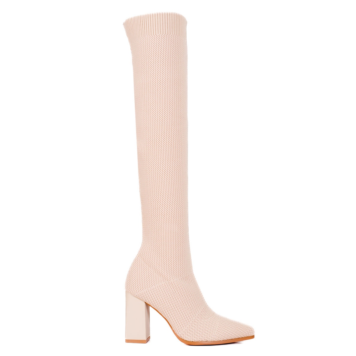 Detalji: Ženske natkoljenice Shelovet s V-izrezom i elastičnim gornjim dijelom bež
