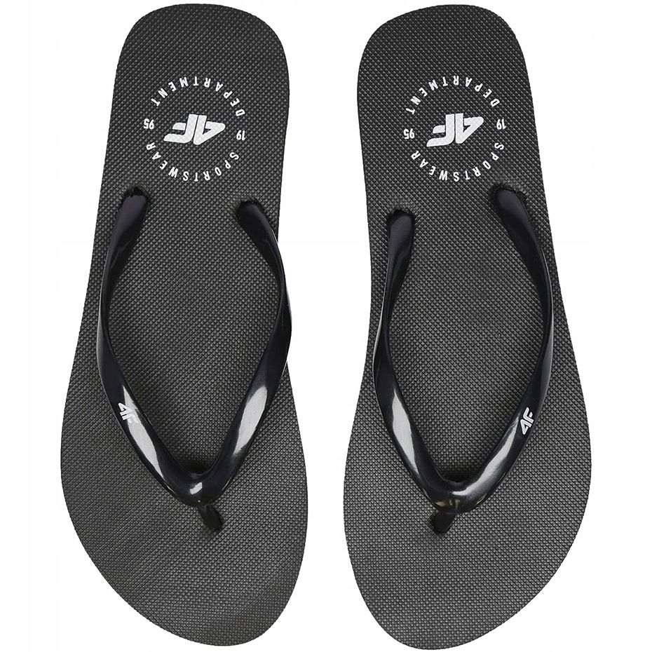 Klasični crni 4F flip -flops stvoren za ljetne dane - do plaže, bazena ili za brzu šetnju gradom. Gumene pruge i lagana pjena EVA potplat osiguravaju udobnost, a minimalistički dizajn odgovara mnogim stilovima.