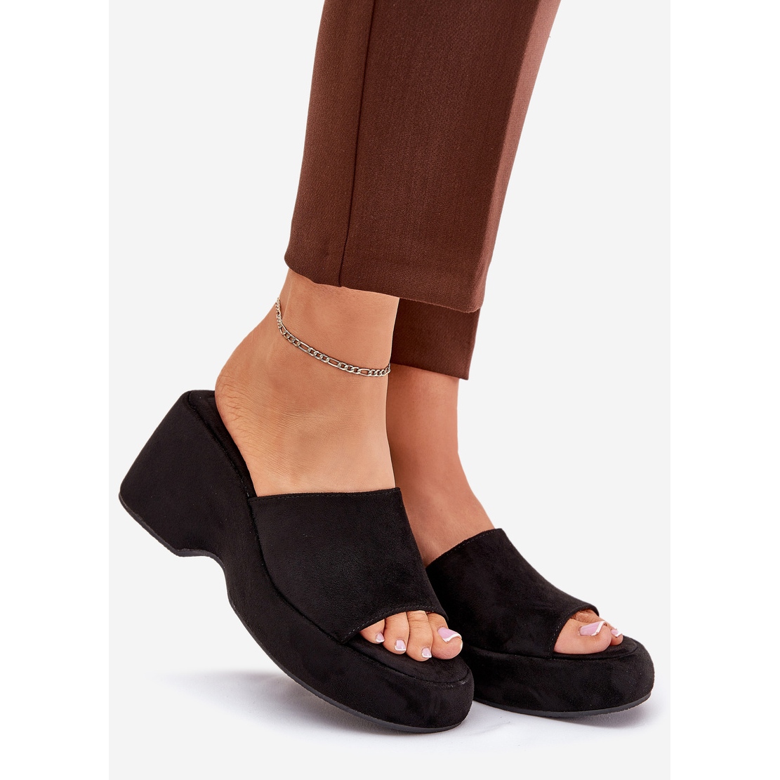 Pojedinosti: Ženske papuče Eco Suede na platformi i crne klinove crna