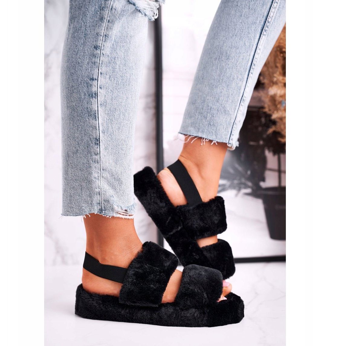 FJ1 Ženske papuče na platformi Krzno Crna bombona
