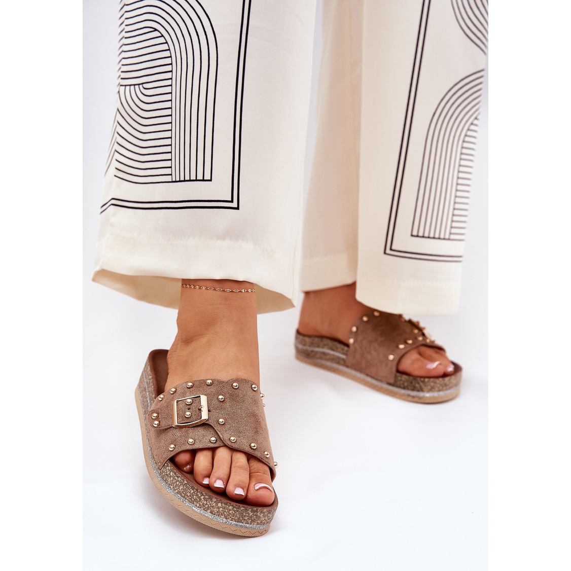 Inna marka Ženske papuče na platformi s kopčom i kakinim klinovima bež