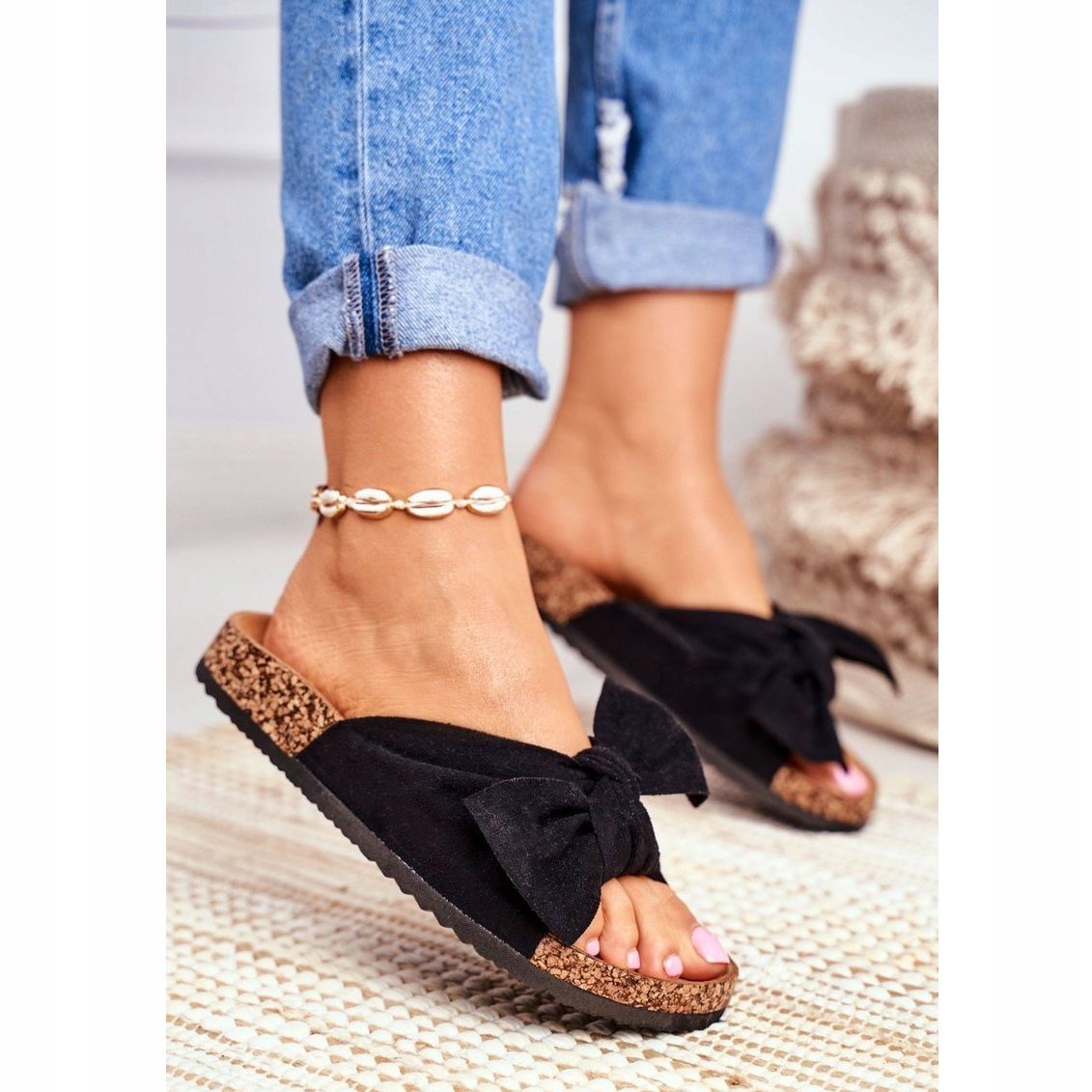 Pojedinosti: PS1 Ženske papuče na plutenim mašnicama Wendy Black crna