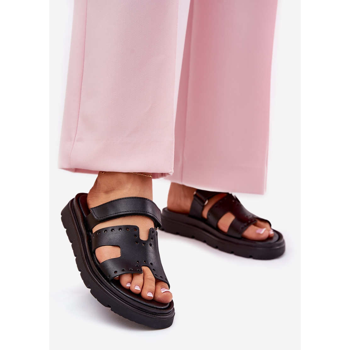 Ženske papuče od prirodne kože na platformi Zazoo 40440 crna