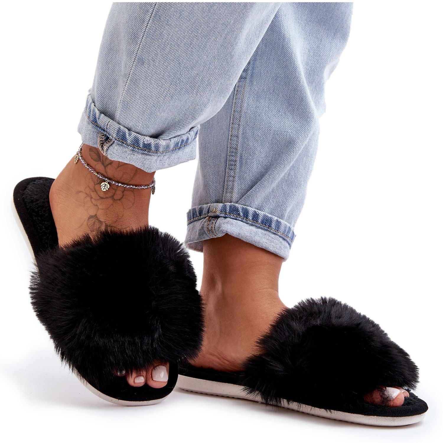 Otkrijte udobnost i stil koji će krasiti vaša stopala iu najhladnijim danima uz crne Vienitta ženske papuče s krznom. Ove elegantne i klasične papuče savršen su dodatak vašoj kućnoj odjeći, pružajući vam ne samo toplinu, već i neviđenu udobnost zahvaljujući mekanom ulošku. Odlikuju se otvorenim prstima, a stopalima omogućuju slobodno disanje, a zahvaljujući obilju krzna obavijaju ih ugodnom toplinom.