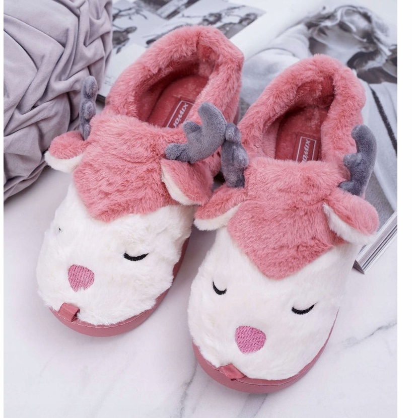 BUGO BUGO Ženske papuče s krznom i sobovima Tamno ružičasti sobovi ružičasta
