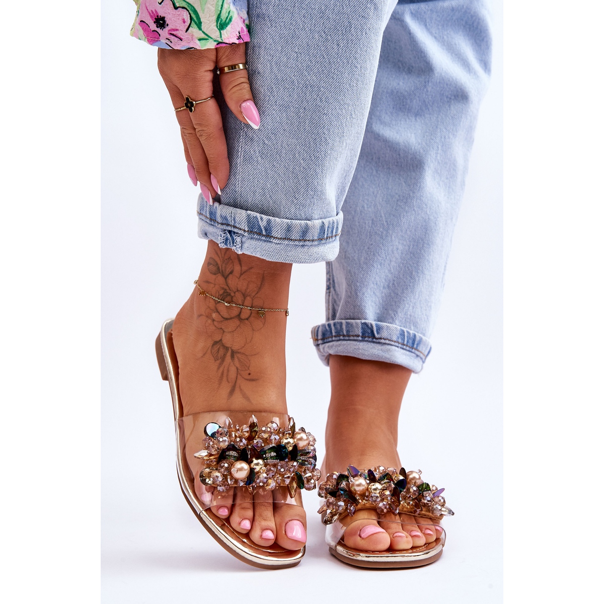 Ženske japanke s ukrasnim kamenčićima S.Barski KV-576-3 zlatne – elegancija u svakom koraku