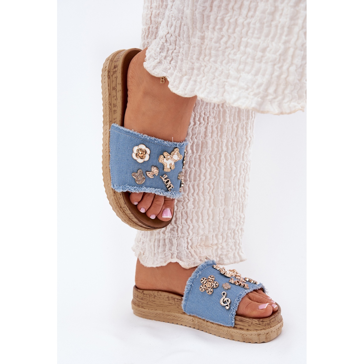 Inna marka Ženske papuče sa zlatnim igle na plavoj platformi plava