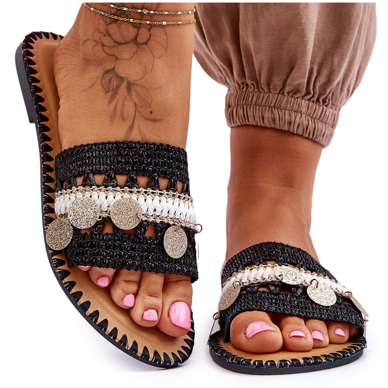 Ženske pletene ukrašene papuče crne Millano