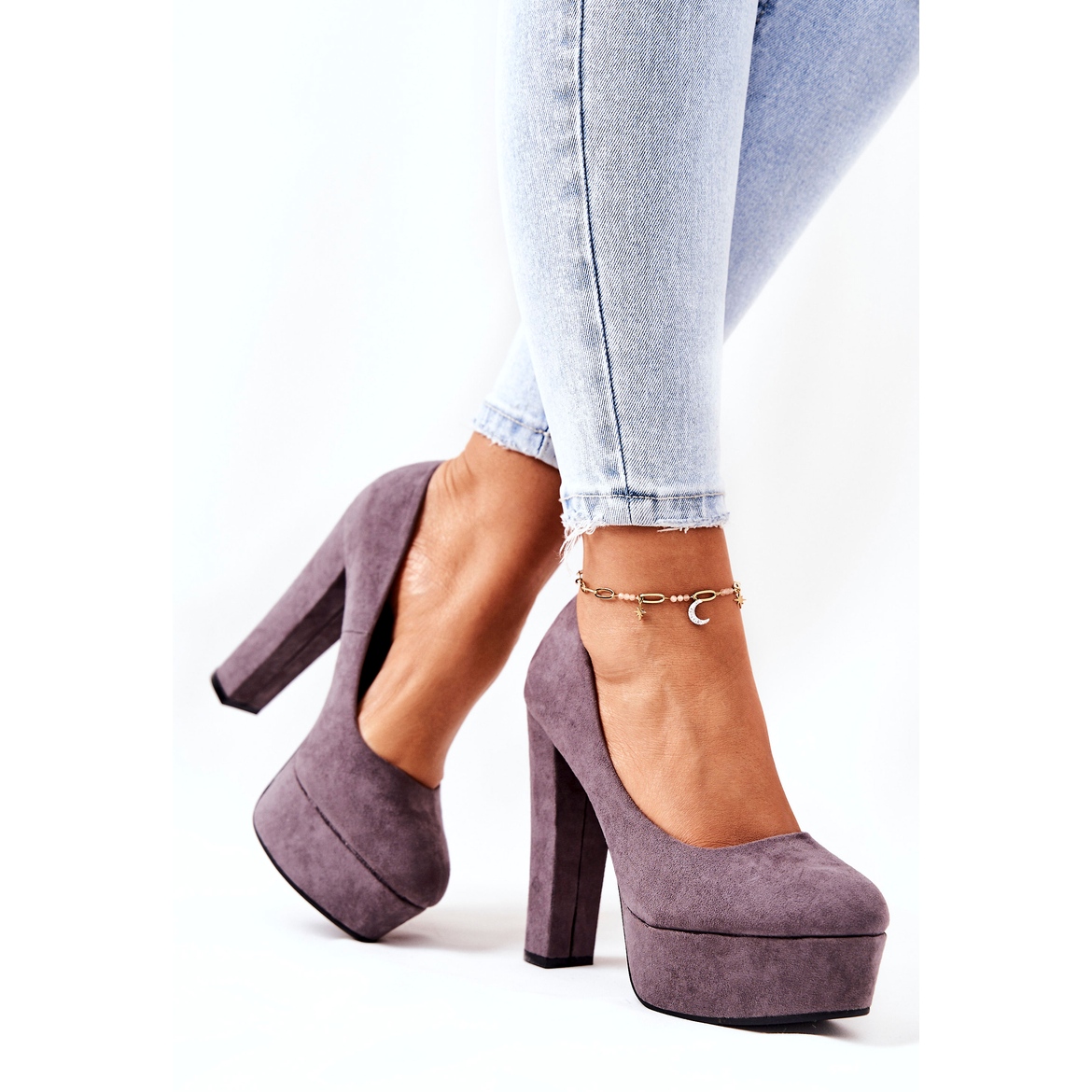 Detalji: Sweet Shoes Ženske pumpe od antilop na sivoj platformi siva