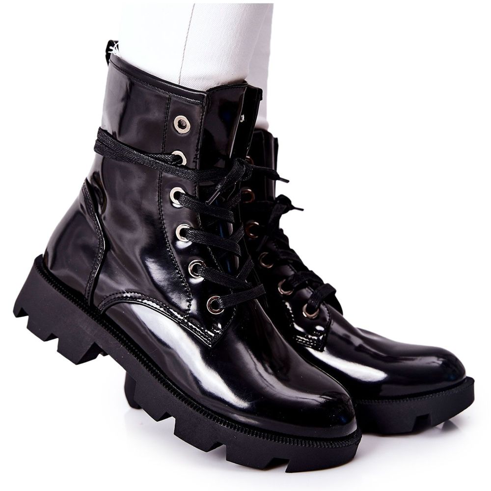 Izrađene od visokokvalitetne lakirane kože, čizme izgledaju vrlo impresivno, a njihova crna boja savršeno pristaje uz razne stilove. Okrugli nožni prst dodaje suptilnost, a visoka osovina, duga 16 cm, pruža odgovarajuću potporu gležnju. Zahvaljujući ravnoj peti, koja mjeri samo 3 cm, možete uživati u udobnosti cijeli dan.