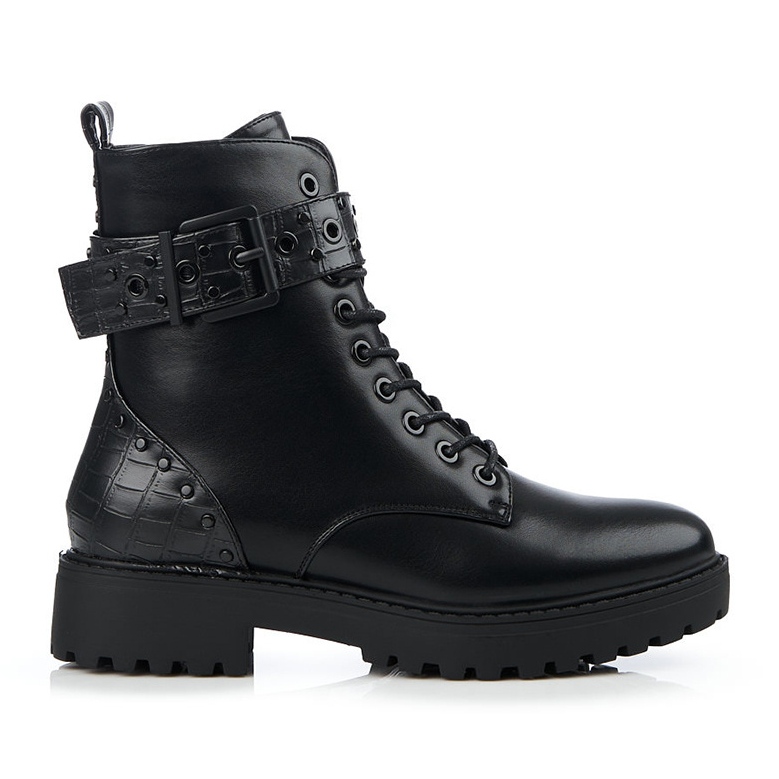 Ovaj model karakterizira izgrađena, ukrućena peta koja stabilizira stopalo, a njihova visina do gležnja daje eleganciju svakom stajlingu. Okrugli vrh i sintetički potplat s gazištem jamče udobnost tijekom dugih šetnji, a ravna peta visine 3,5 cm čini ih savršenim za svakodnevnu upotrebu.