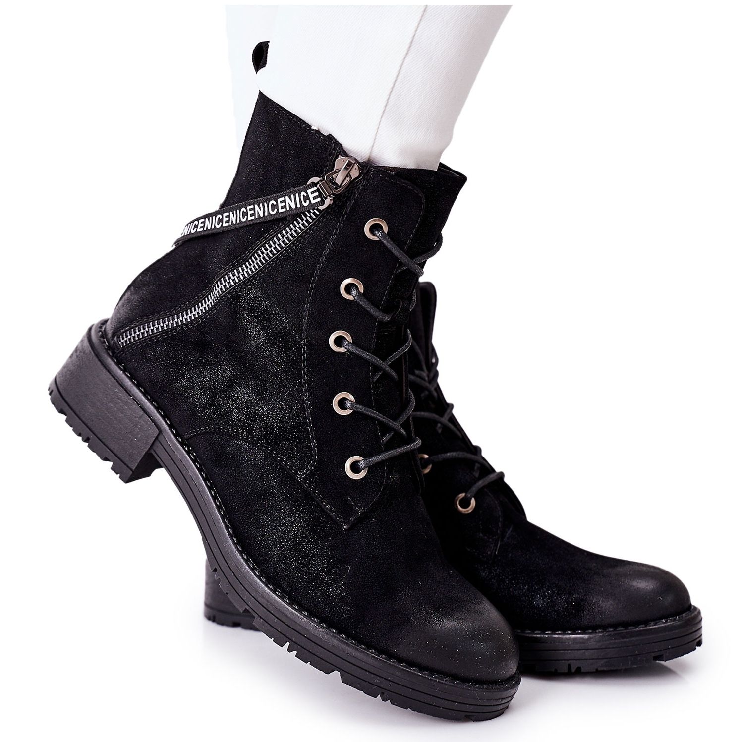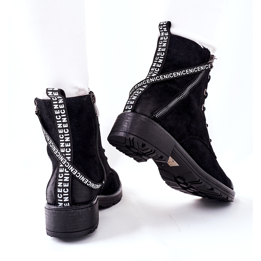 Vinceza čizme ženski izolirani radnici - crne, elegantne i praktične čizme koje će raditi na hladnijim danima. Izrađene od visokokvalitetne ekološke kože, s izolacijom iz pokrivača obuće, pružaju toplinu i udobnost čak i pri niskim temperaturama. Klasični, zaobljeni nos i ravni potplat s 4 cm jamčim udobnosti svaki dan, a klizač sa strane olakšava stavljanje. Dodatni ukrasni dvorac i vezanje daju modelu moderan, "radnički" karakter.