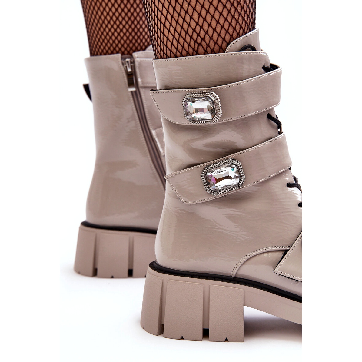 Detalji: Ženske radničke čizme lakirane svijetlo sive S.Barski MR870-61 siva