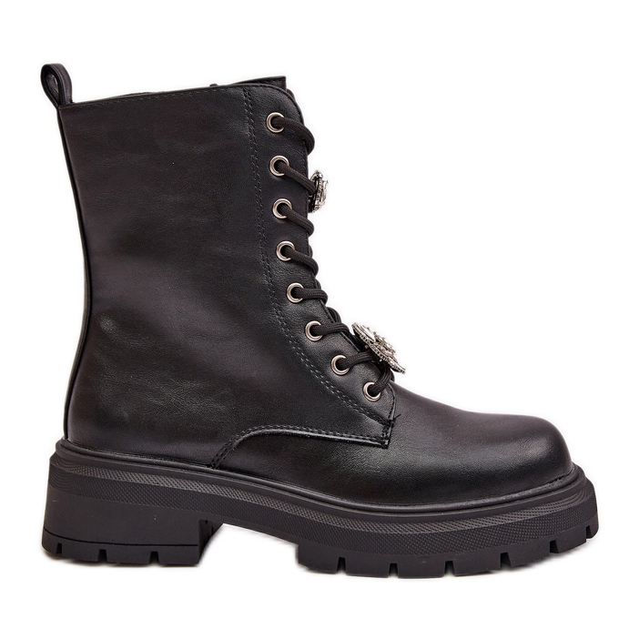 Pojedinosti: Ženske radničke čizme od eko kože s iglama, crne Kristine crna