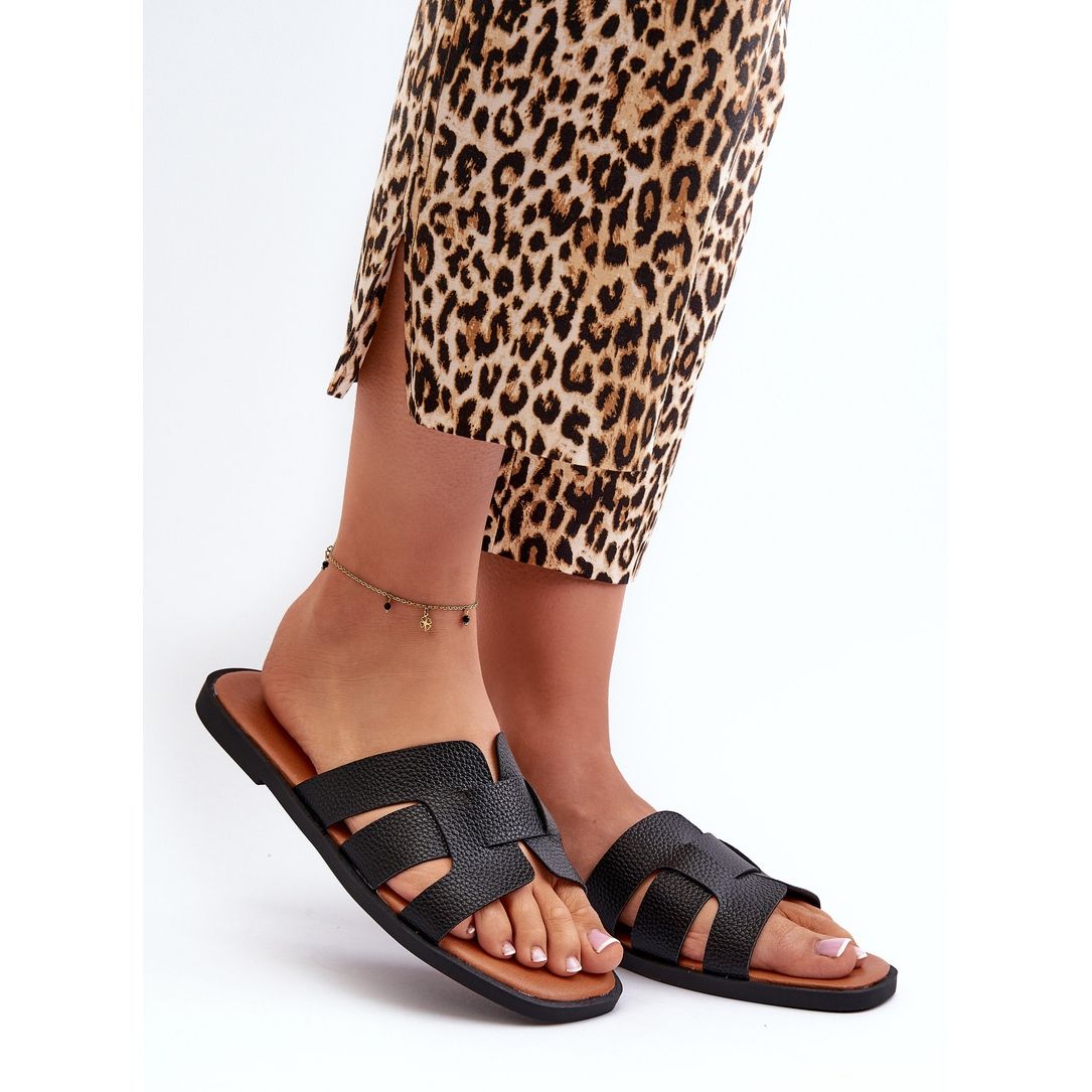 Pojedinosti: Ženske ravne japanke od eko kože crne boje Risamay crna