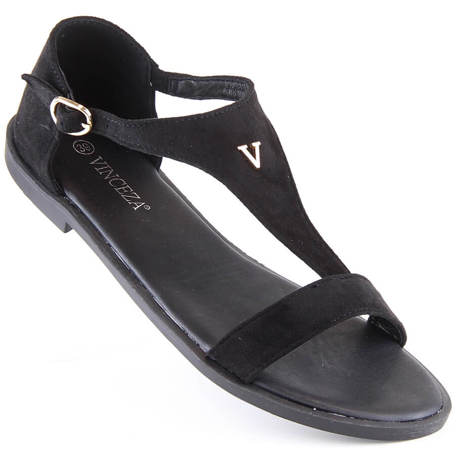 - Model: Vinceza crne ženske ravne sandale od brušene kože