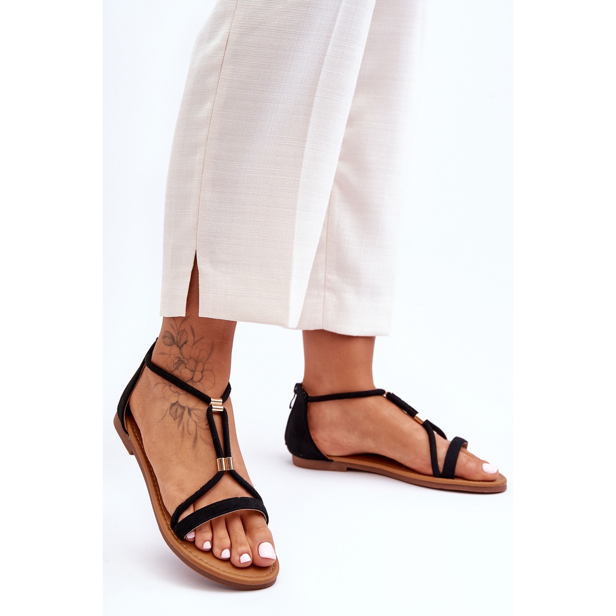 - Model: Ženske ravne sandale s patentnim zatvaračem