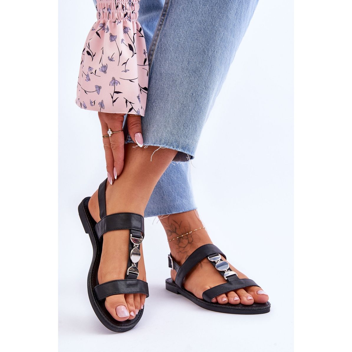 Ženske ravne sandale s ukrasnim remenom Black Berry crna