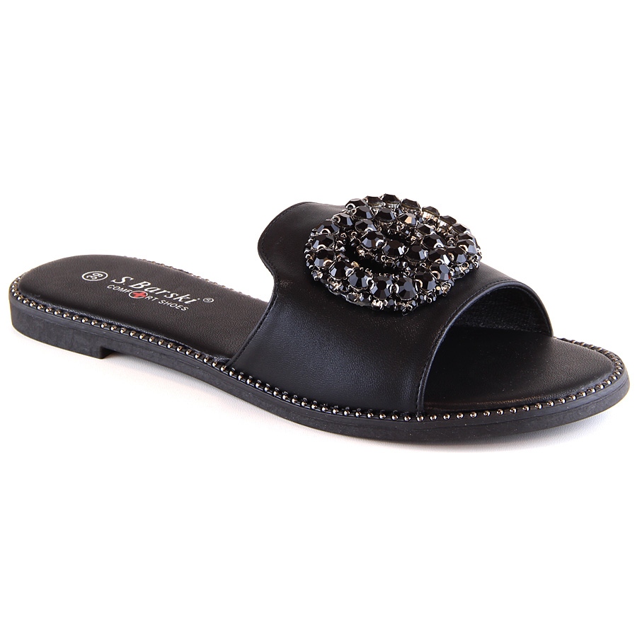 Pojedinosti: Ženske ravne udobne papuče sa cirkonima crne S.Barski Kv 520-30 crna