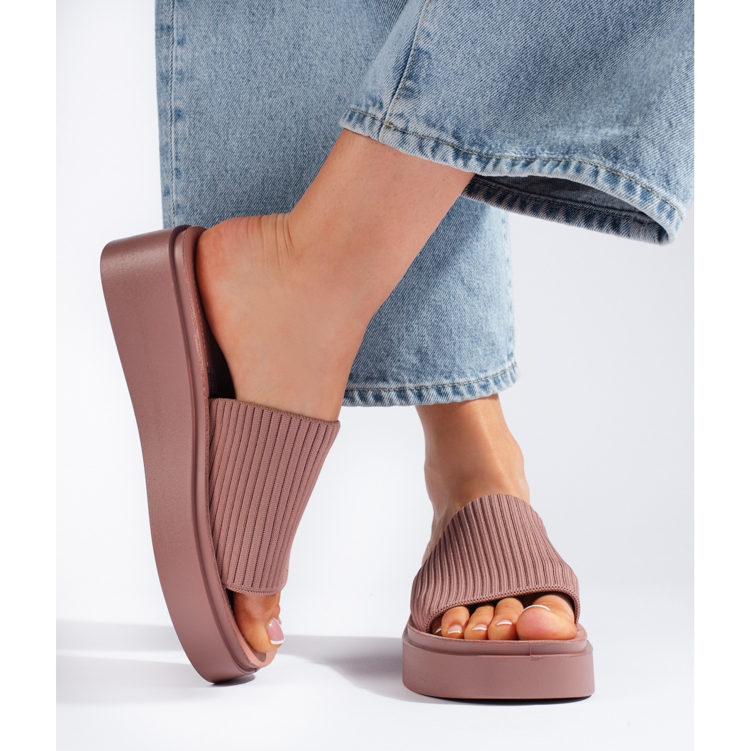 Izrađeni od visokokvalitetnog tekstilnog materijala, flip -flops osigurava izdržljivost i udobnost nošenja. Imitacija kože unutar cipele osigurava mekoću stopala, a otvorena peta i umetnuti rez čine ih na pravi užitak. Veliki klin od 5 cm dodaje ne samo osjetljivu visinu, već i stabilnost, što ove flatove čini idealnim izborom za duge šetnje ili ležerne sastanke s prijateljima.