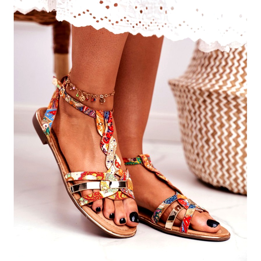 Pojedinosti: PS1 Ženske sandale Elegantna narančasta orijentalna Brooke višebojan zlatni
