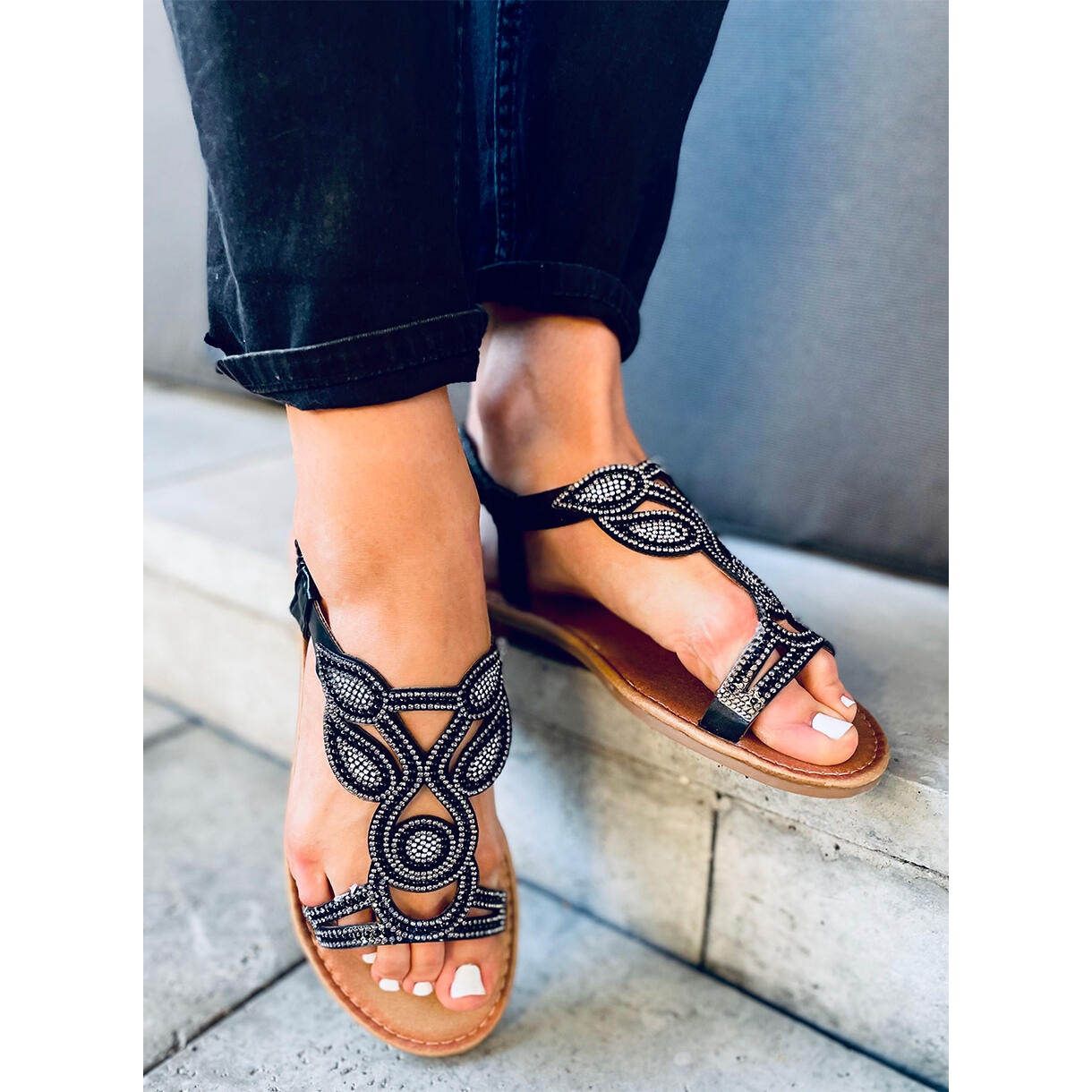 Otkrijte eleganciju i udobnost uz crne ženske sandale Marion Black! Ove zrnate sandale savršen su spoj stila i udobnosti koji će zasigurno istaknuti vaš svakodnevni stajling. Njihov jedinstveni ukras sa sjajnim kamenčićima i biserima privlači pozornost i dodaje jedinstven karakter svakom looku.