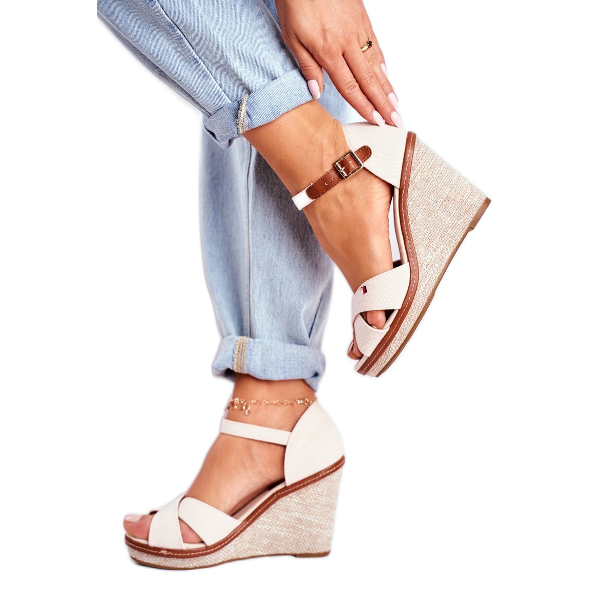 Pojedinosti: SEA Ženske sandale na klin bež LaMane