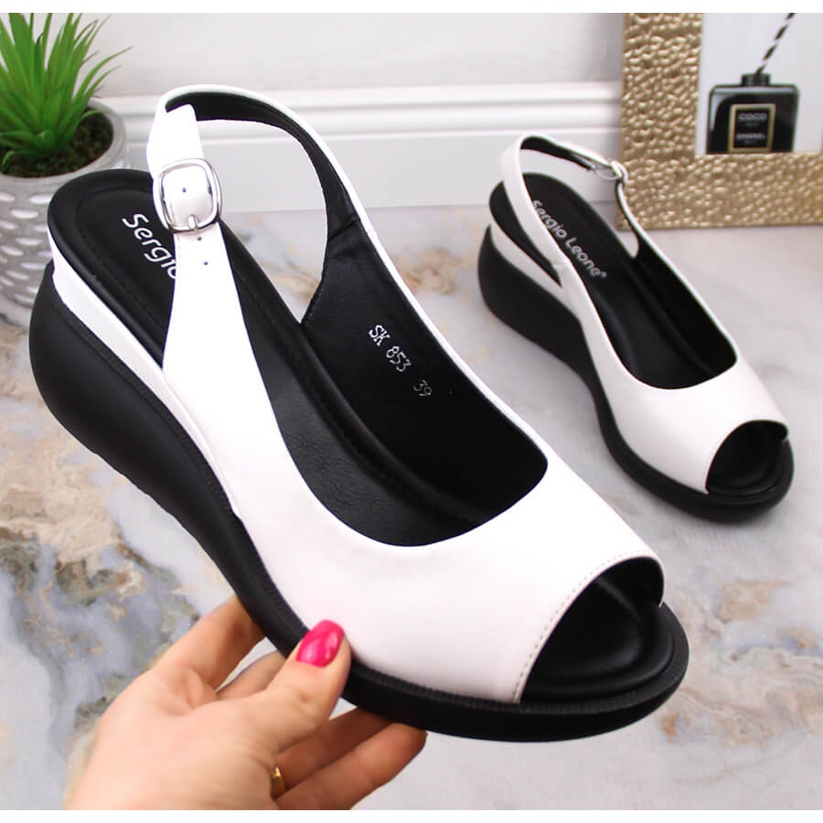 Ženske bijele sandale na klin Sergio Leone SK853 idealan su izbor za žene koje cijene moderan izgled i udobnost nošenja. Izrađene od visokokvalitetnih materijala, ove lagane cipele pružaju cjelodnevnu udobnost. Njihov klasičan kroj čini ih prikladnim za mnoge stilove, kako svakodnevne tako i elegantnije.