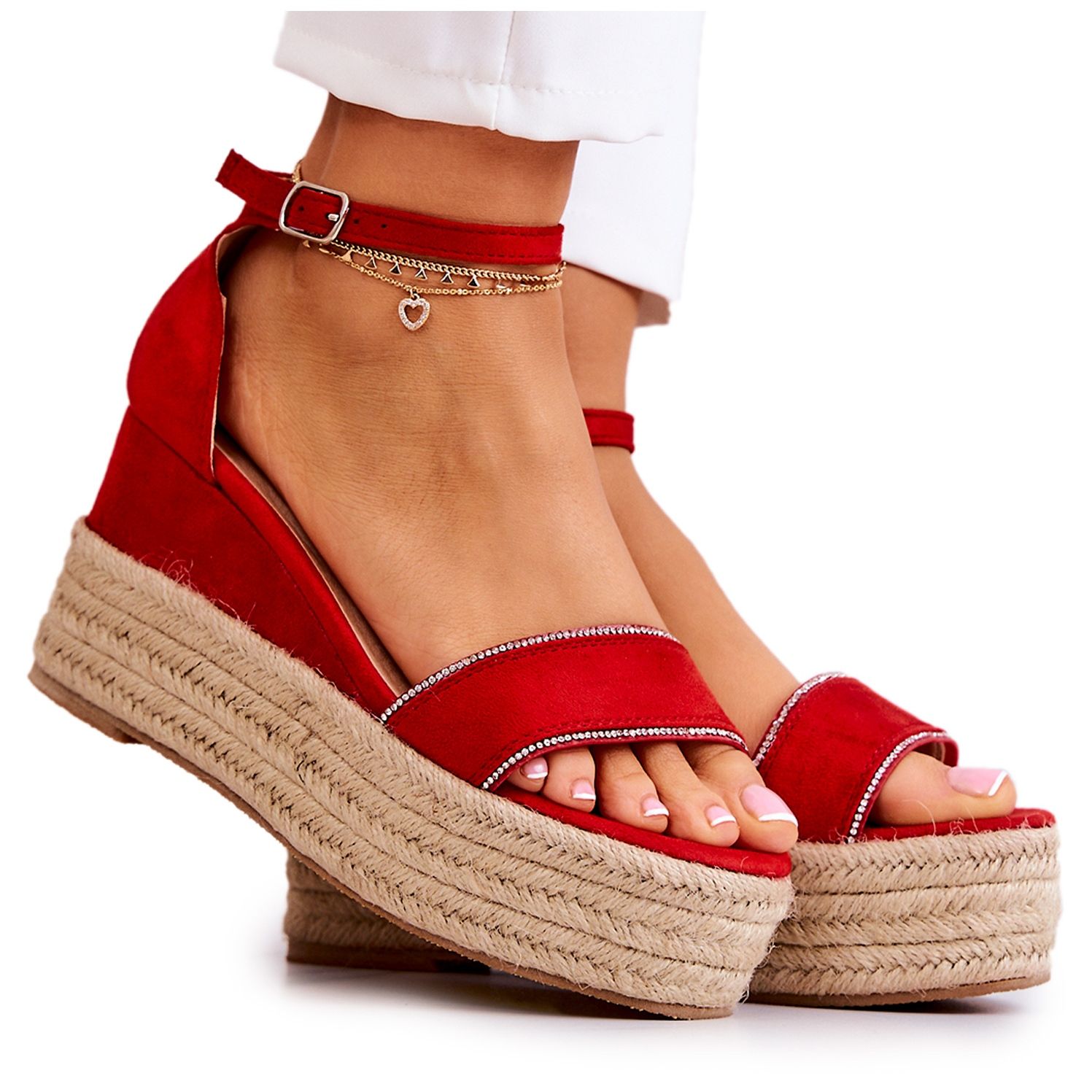 FW1 FW1 Ženske sandale na klin s crvenom linijom od kubičnog cirkonija crvena