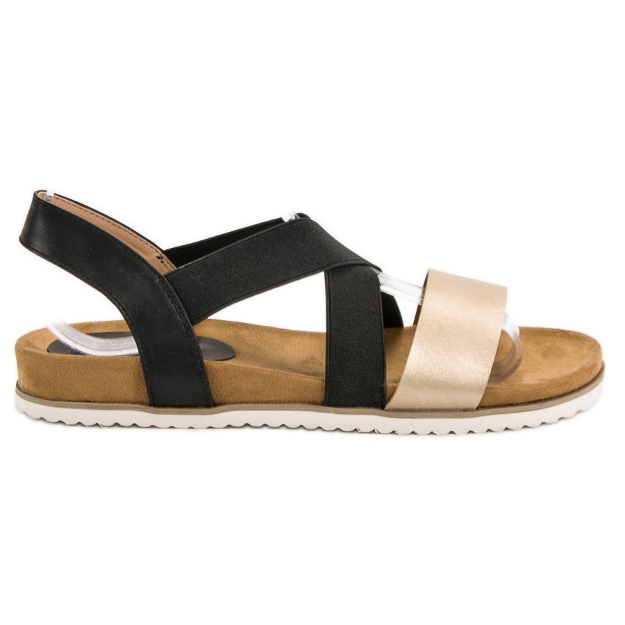Ženske crne slip-on sandale Evento savršen su izbor za žene koje cijene udobnost i stil u svakodnevnom stajlingu. Ove klasične sandale imaju elegantan, minimalistički dizajn koji se savršeno slaže s raznim odjevnim kombinacijama. Dekorativni pojas zlatne boje dodaje karakter, privlači pažnju i daje cijeloj stvari suptilnost.