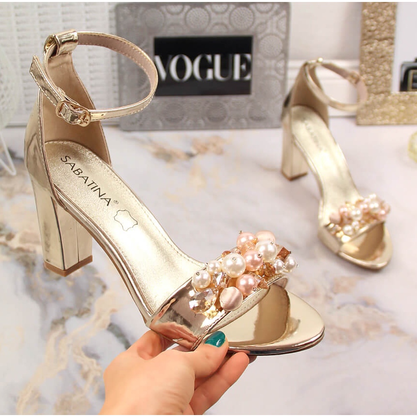 Pojedinosti: Ženske sandale na ogledalu sa zlatnim perlicama Sabatina B185-2
