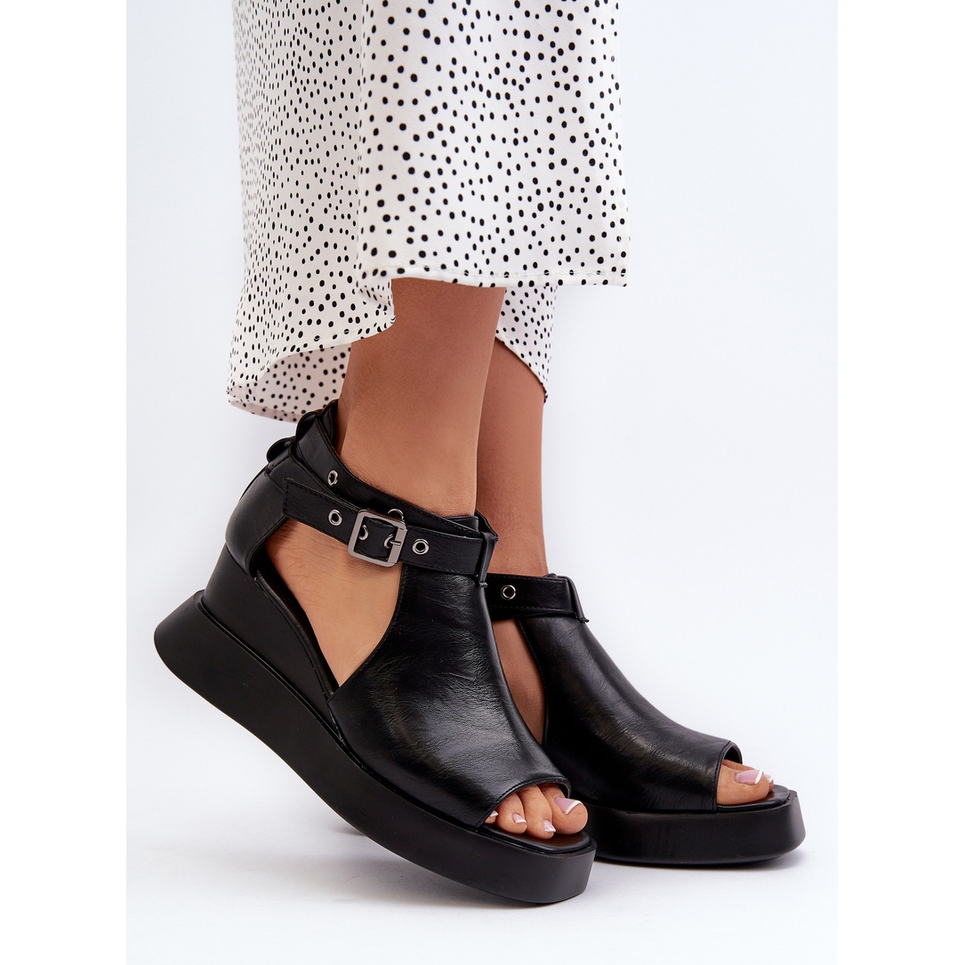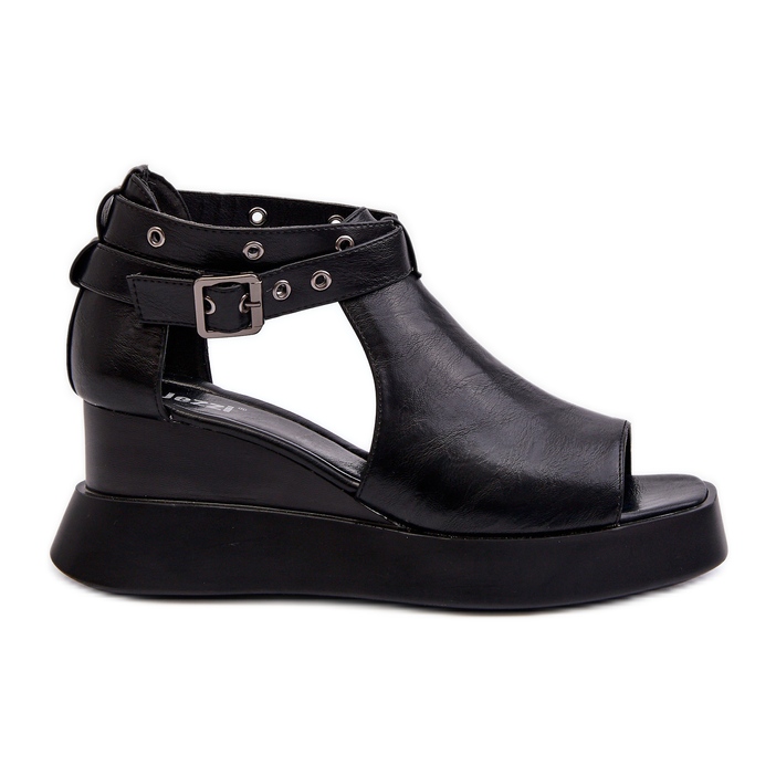 Jezzi Ženske sandale na platformu i wedge od eko kože crne hloeli crna