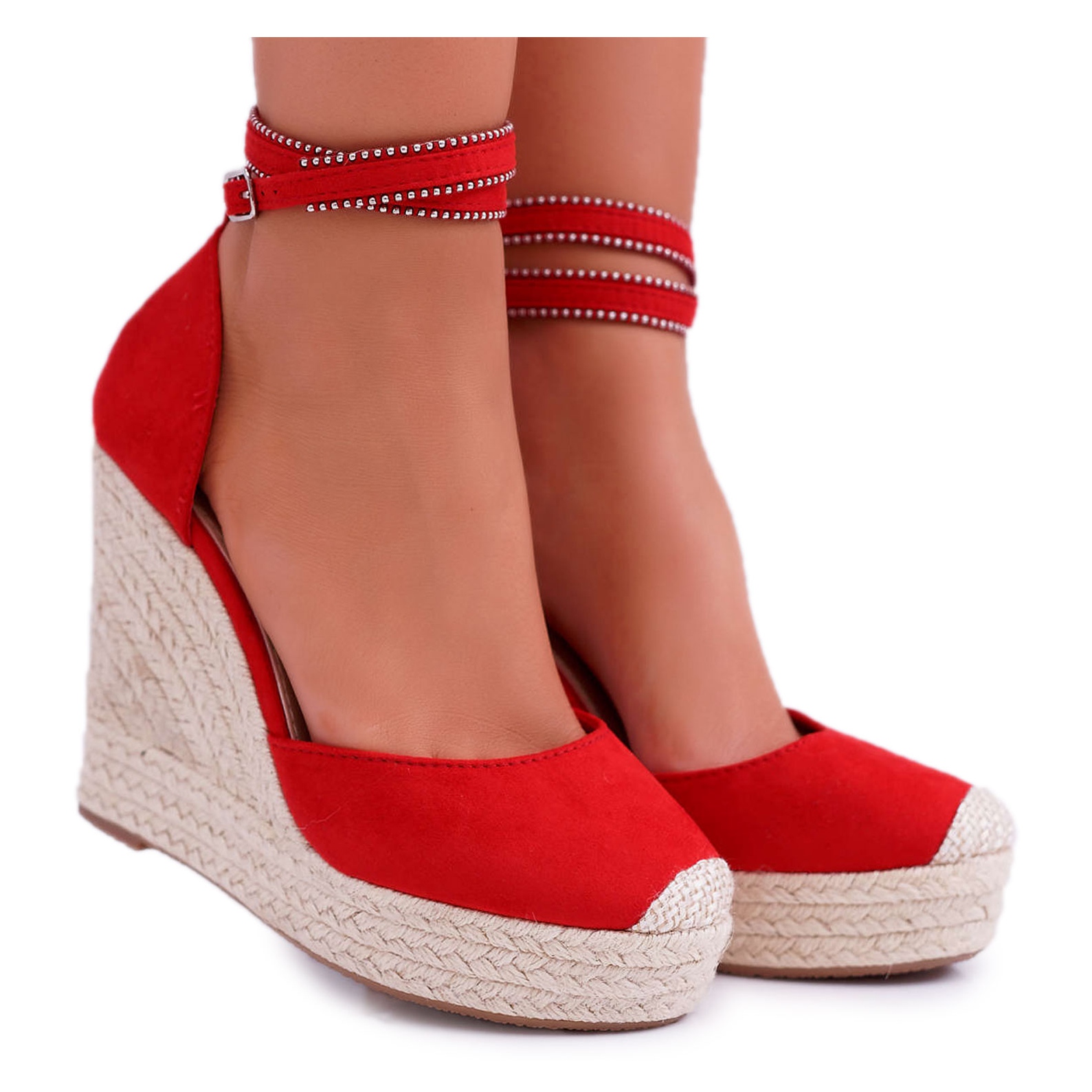 FB2 FB2 Ženske sandale na platnu na klin crvena kanterola