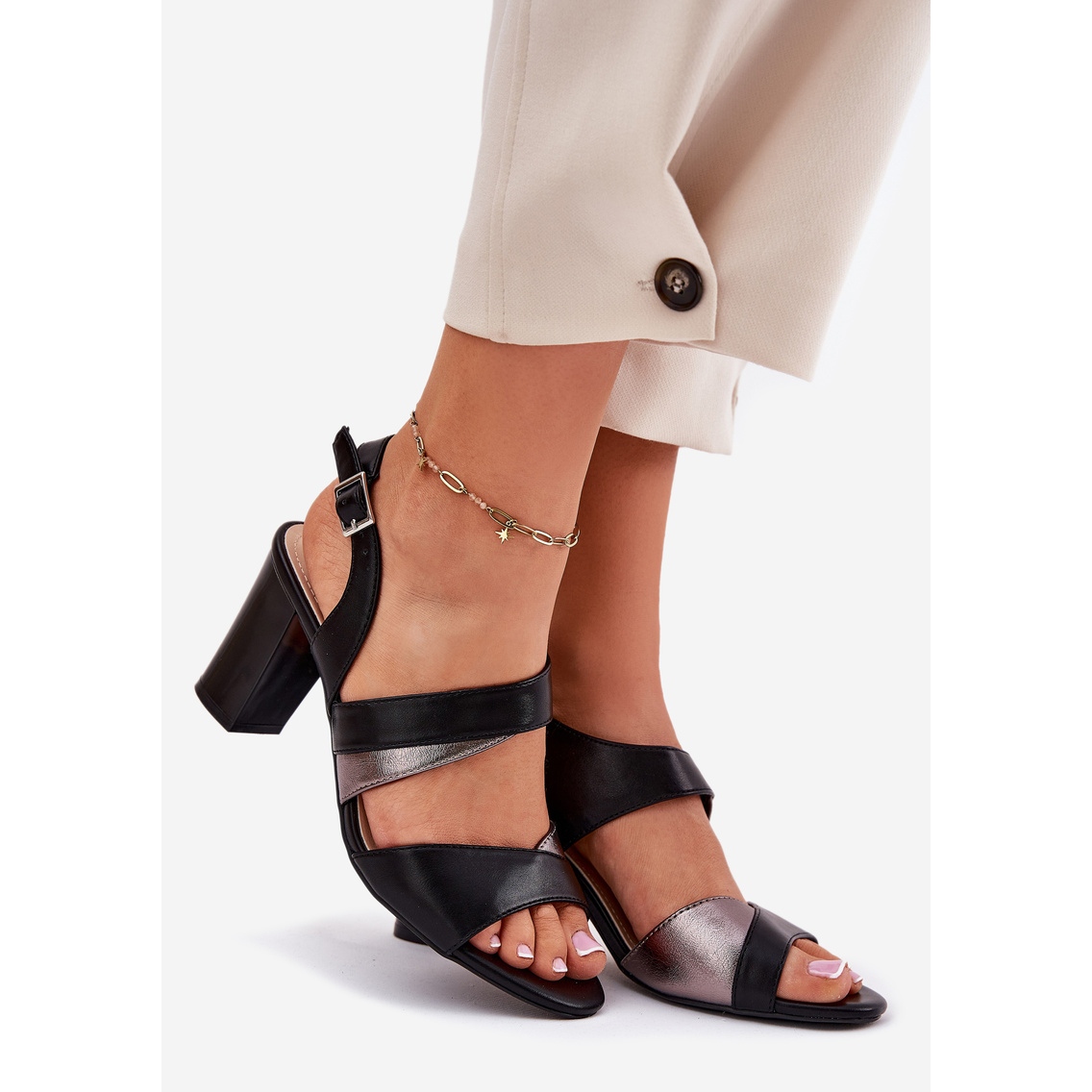 Ugrađene s visokom petom od 8 cm, ove sandale osiguravaju stabilnost i udobnost nošenja tijekom dana. Podesivi remen pričvršćen kopčom omogućuje vam da savršeno odgovaraju stopalu, što je važno, posebno tijekom dugih sati korištenja. Osim toga, mekani kožni umetak pruža udobnost i odgovarajuću ventilaciju, zahvaljujući koje stopala ostaju svježa čak i tijekom intenzivnih aktivnosti.