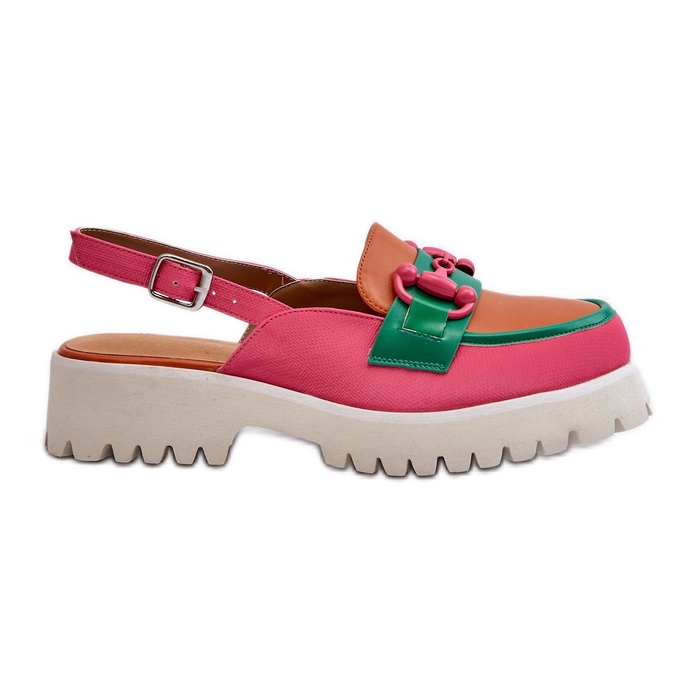 Ovaj se model odlikuje podesivim remenom straga, koji pruža savršeno uklapanje u stopalo, što je ključno za praktičnost tijekom cijelog nošenja. Ravna peta s visinom od 4 cm jamči stabilnost, a dodatna platforma visoka 2,5 cm čini korak i slobodno.