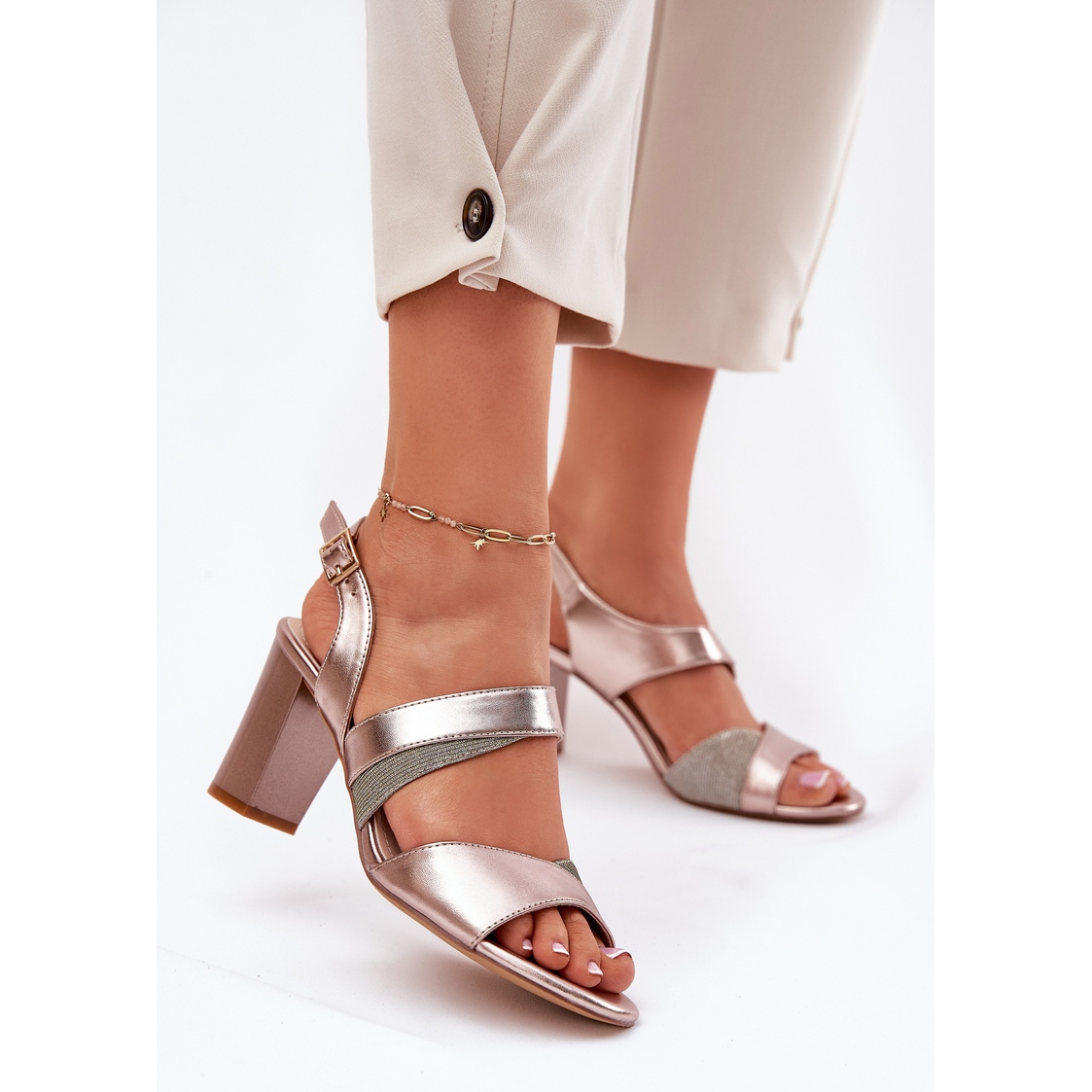 Napravljene od visokokvalitetne eko kože, ove sandale ne samo da upadaju u oko, već i cijeli dan osiguravaju udobnost. Stabilna peta od 8 cm visokih pistila čini svaki korak samouvjerenim i udobnim, a podesivi pojas pričvršćen kopčom omogućuje vam da savršeno odgovarate oblika stopala.