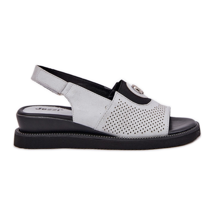 Detalji: Jezzi Ženske sandale na srebrnom klinu s ukrasom srebro